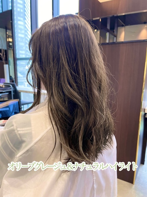 3,オリーブグレージュ&ナチュラルハイライト