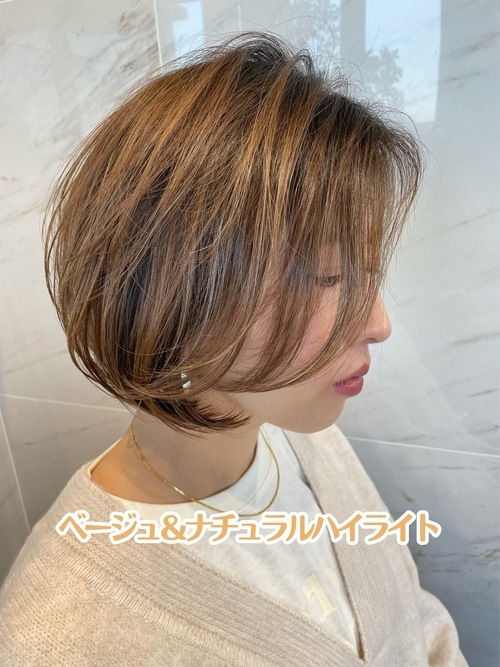 温かみのあるベージュカラーは、肌なじみがよく、柔らかな印象を与えます。ナチュラルハイライトをプラスすることで、髪に立体感と輝きを与えます。明るめのハイライトで、夏の陽光をイメージした自然な仕上がりを目指しましょう!